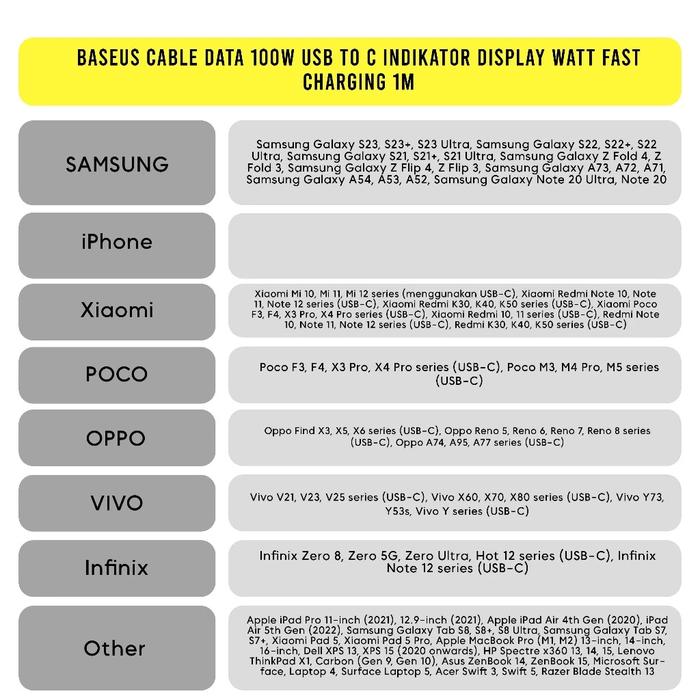 Baseus Cable Data 100W Usb To C Indikator Display Watt Fast Charging 1M - Blue, 1M