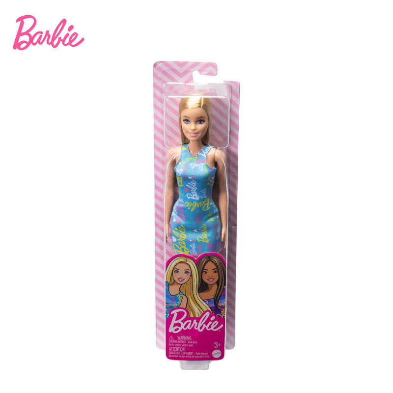 Barbie Basic Doll with Blue-print Dress Doll - Mainan Boneka Anak Perempuan
