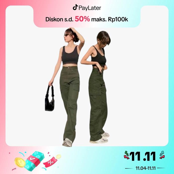 Cassie Cargo Pants Celana Kargo Drill Kulot Kain Katun Tebal Nyaman Panjang Wanita Baggy Kerja Loose Jogger Kantor Casua