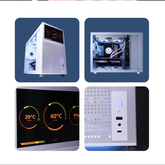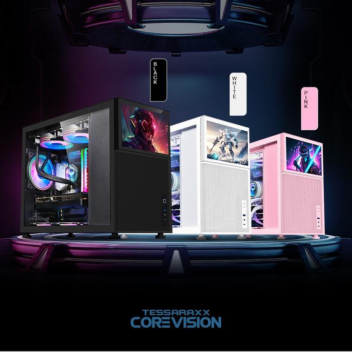 Casing Gaming Armaggeddon Tessaraxx Corevision M-Atx Gaming Pc Case | With 8" Lcd Display Activity Monitor Glass Led -