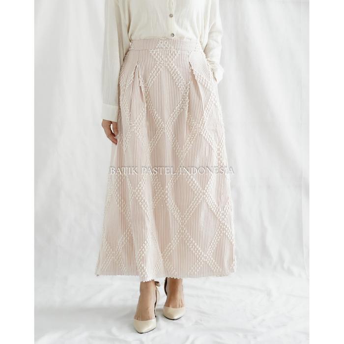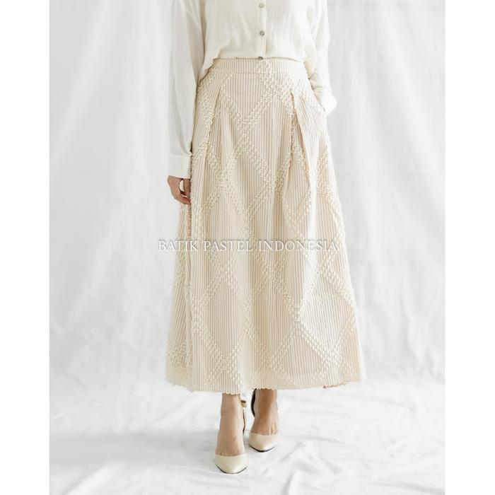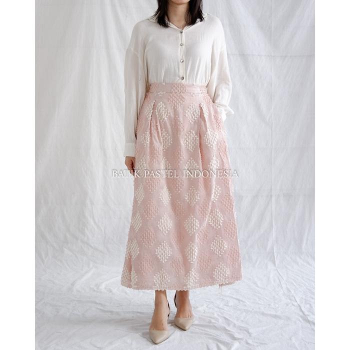 Bawahan Rok Atau Celana Tenun Sulam Bulu - Batik Pastel - Broken White
