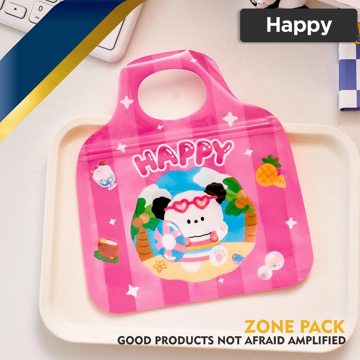 Ziplock Jinjing | Tas Jinjing Ulang Tahun Anak | Plastik Goodiebag Tenteng | Souvenir Hampers Ziplock Bag - Happy