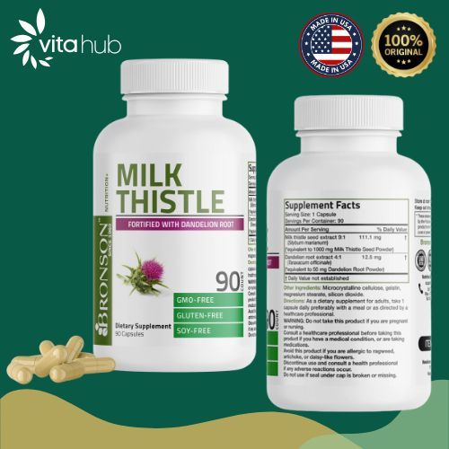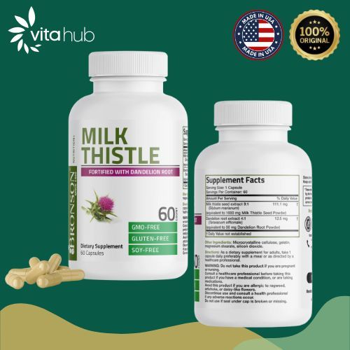 Bronson Milk Thistle 1000mg Liver Detox Support - Bronson Liver Health Antioxidant With Dandelion