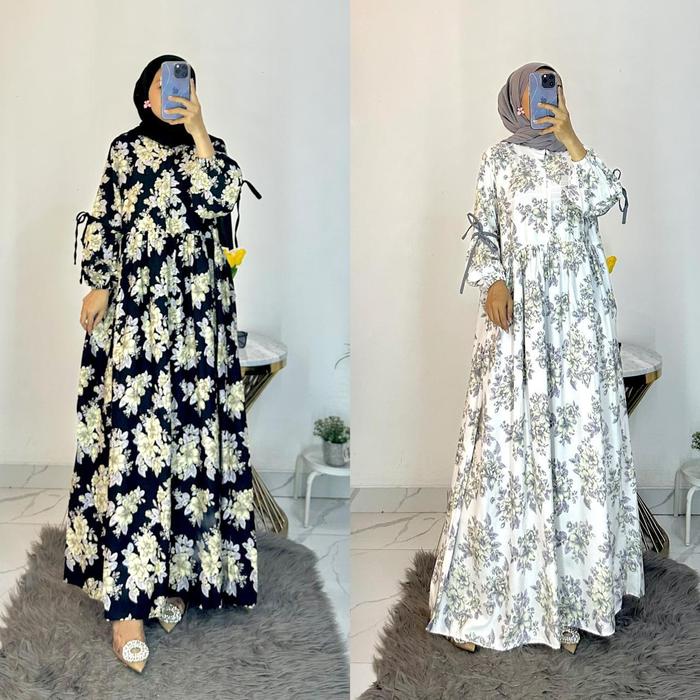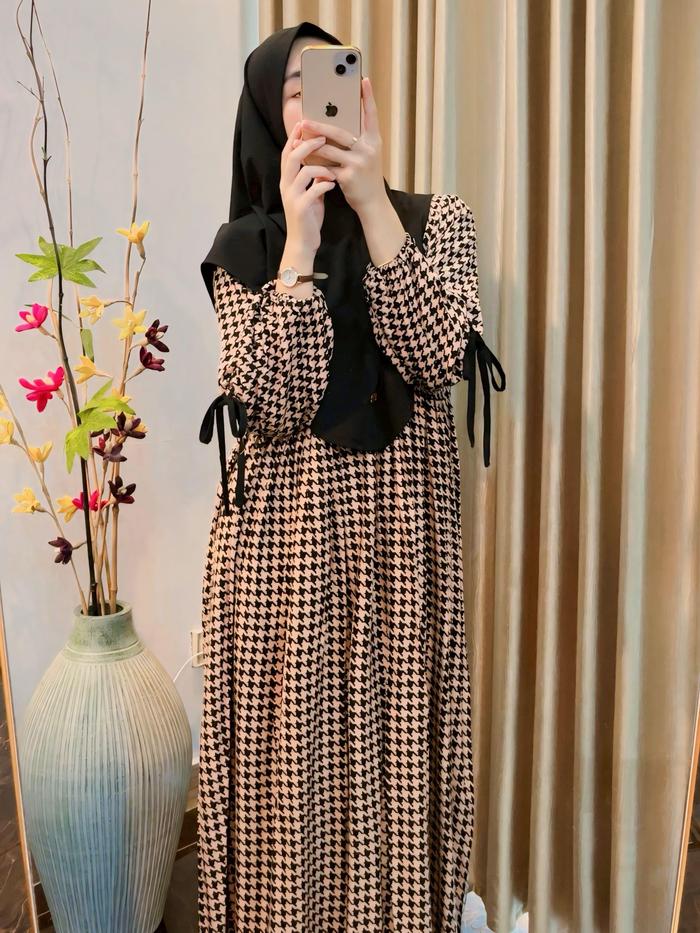 Dress Anjani Pita Rayon Diamond By Warna Warni Brand - Anjani Cantik Hitam, M : Ld 110 Pb 130
