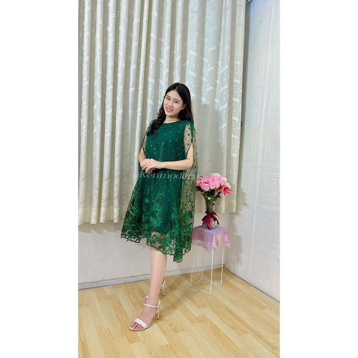 Ken-122 Gaun Pesta Dress Brukat Kondangan Full Brokat Mewah Bisa - Hijau Botol
