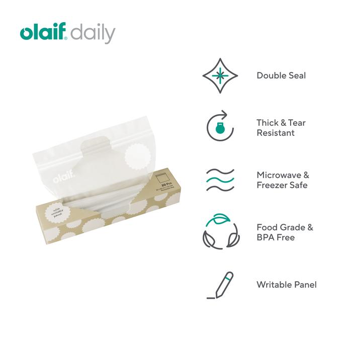 Olaif Daily Double Seal Ziplock Bag - 20Pcs - Plastik Klip / Plastik Makanan Perlengkapan - 0.7L 17X17Cm
