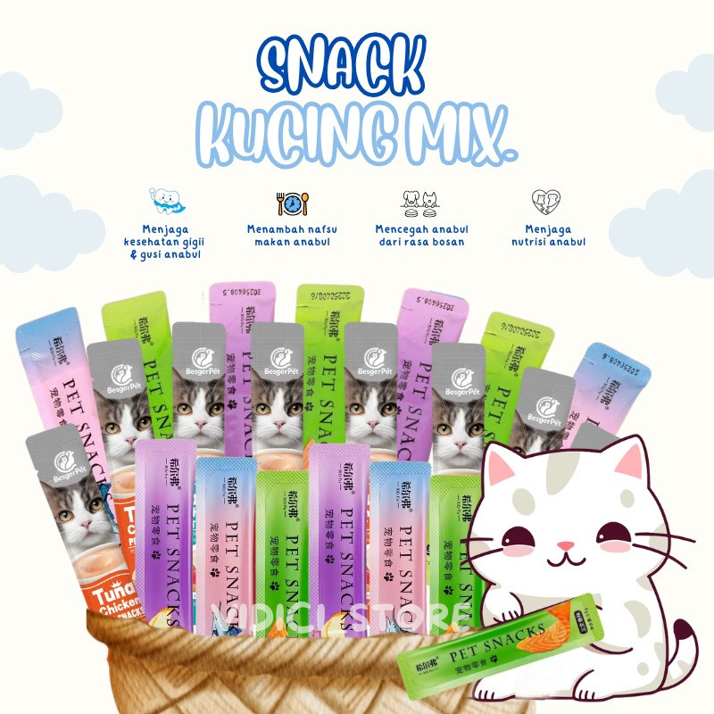 Snack Kucing Mix isi 50 pcs /Strip Kucing Kecil / Cemilan Kucing/ Snak Penggemukan Makanan