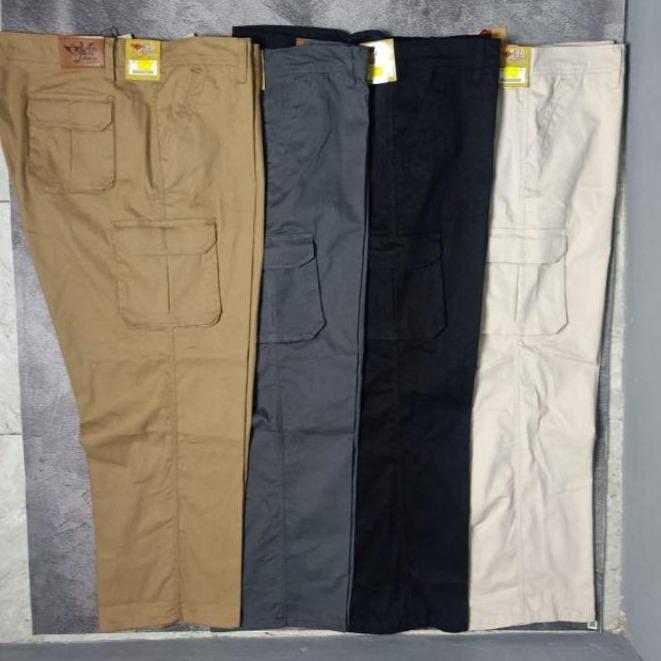 Celana Cargo Panjang Pria Jumbo Dewasa Bigsize Melar Katun - Hitam, 27\28