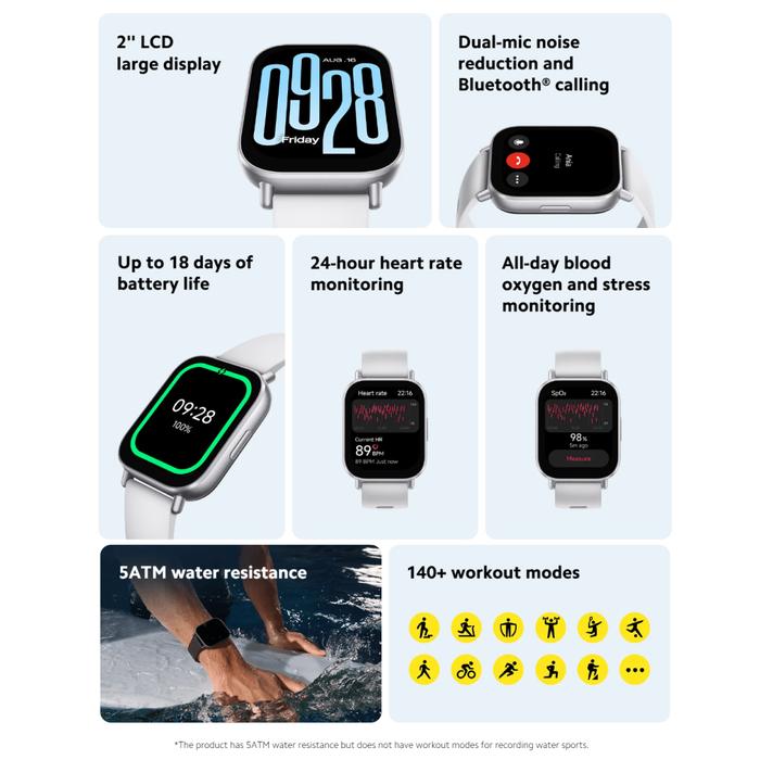 Xiaomi Redmi Watch 5 Active 2.00 Inch | 140+ Mode Olahraga | Tahan Air 5Atm | Baterai Tahan 18 Hari - Black