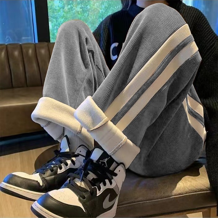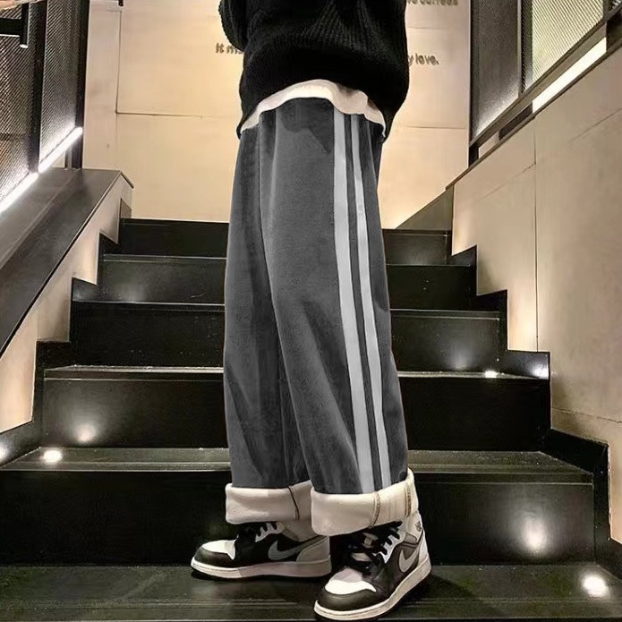 KeyBoy celana panjang pria winter corduroy thermal baggy straight celana plus beludru dewasa cowok korean style