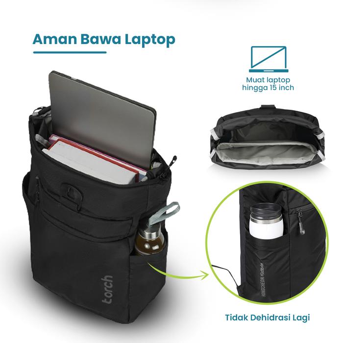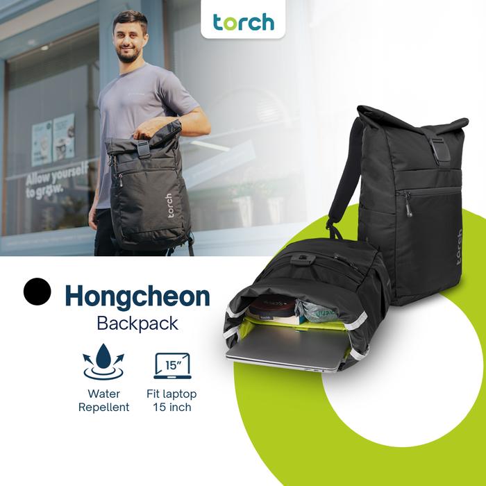 Free GiftTorch Backpack Laptop Sekolah Waterproof Backpack Hongcheon - Hitam