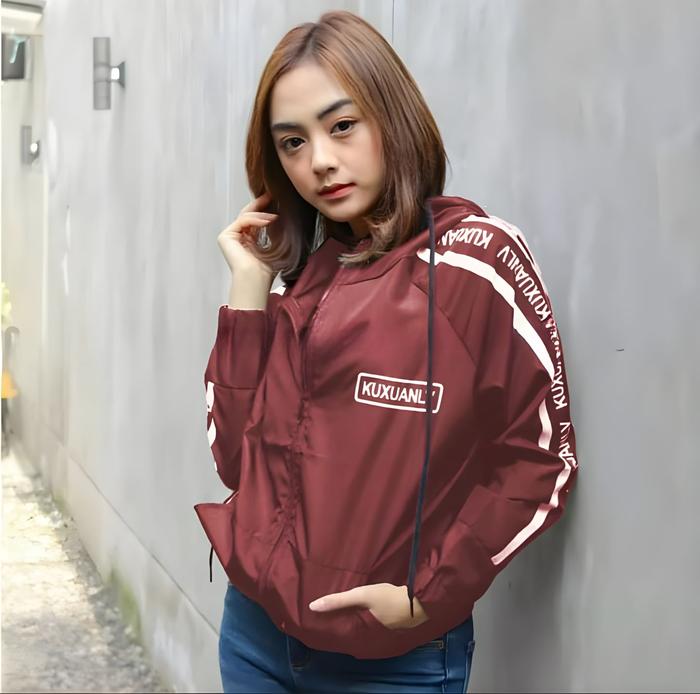 Alfan Fashion - Jaket Hoddie Zipper Wanita Parasut Kuxuanlv Sporty Korean Style Outer Baju - Kuning Mustard, M