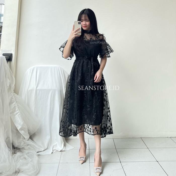 Hanoy Brukat Dress Wanita Pesta Kondangan Populer Kekinian | Dress Natal | Dress Gereja | Dress Ulangtahun | Dress Wanit