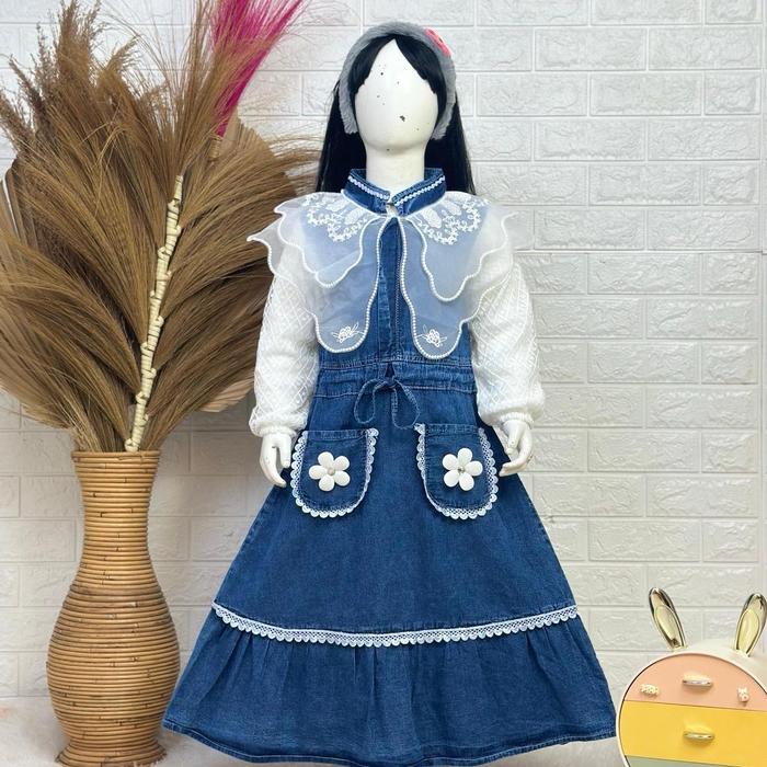 Cintafashion Longdress Zeeva New - Overall Dress Jeans Anak Perempuan Mix Brukat Anak Usia 4-10 Tahun - 4-5 Th