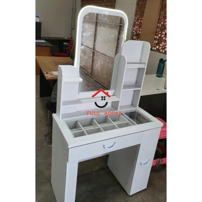 KHUSUS KARGO LUAR SURABAYA meja rias putih dengan lampu LED dan laci penyimpanan minimalis termurah meja rias blogger meja rias youtuber live shopping