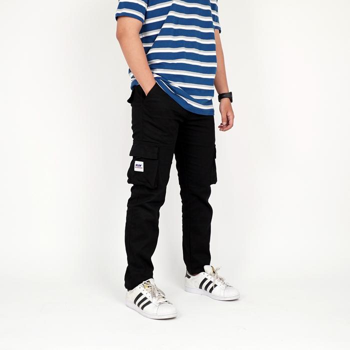 Hooligans Long Cargo Careca 21.1 Black Celana Kargo Hitam Slim Fit Panjang Stretch Pria - Hitam, 28
