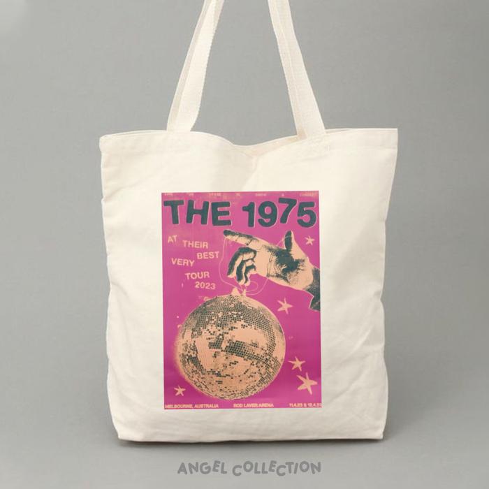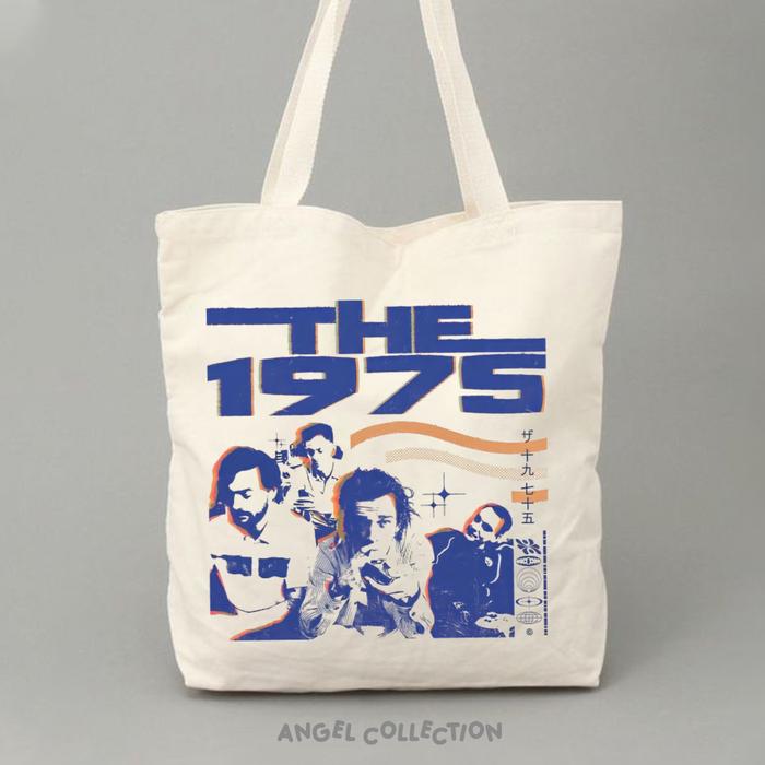 Tas Tote Bag 100 PERSEN Kanvas Resleting The 1975 English Pop Rock Band Aesthetic Ukuran 30X40 - Thei01, Tanpa Resleting
