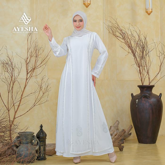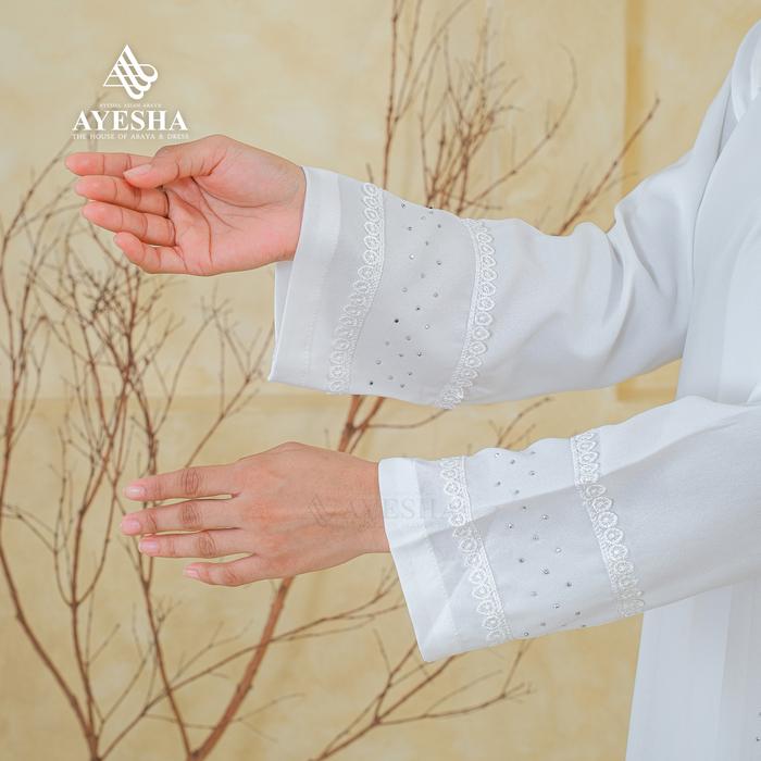 Gamis Putih Wanita Abaya Turkey Mewah Elegan Premium Terbaru - Renda Putih, M