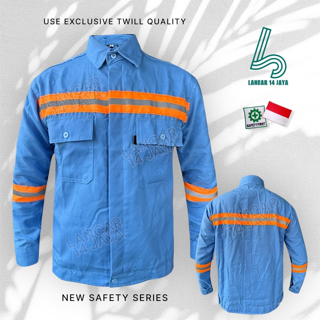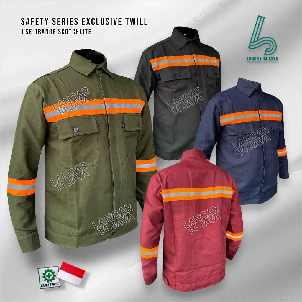 Baju safety lengan Panjang seragam kerja lapangan kemeja proyek atasan bahan Exclusive Twill Skolet Oren Terbaru