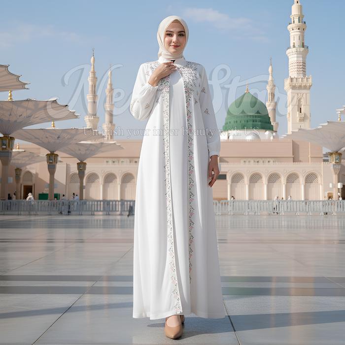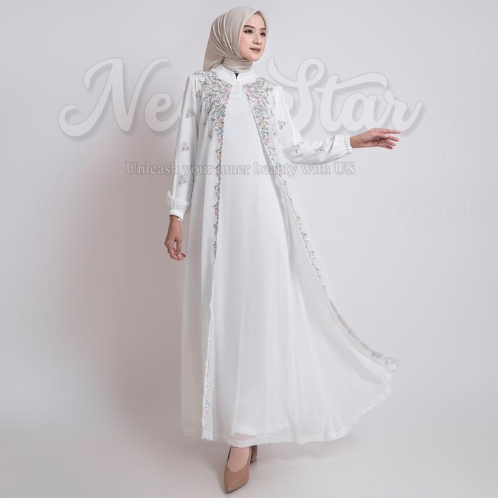 Newstar - Gamis Putih Lebaran 2026 Terbaru Baju Muslim Wanita Dress Madinah Mewah Simple Elegan Abaya Turki Manasik Haji