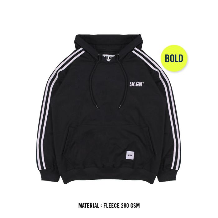 Hooligans Hoodie Bold Linea 22.1 Black Hitam Garis Putih Pria Fleece Nyaman Basic Casual - S, Hitam