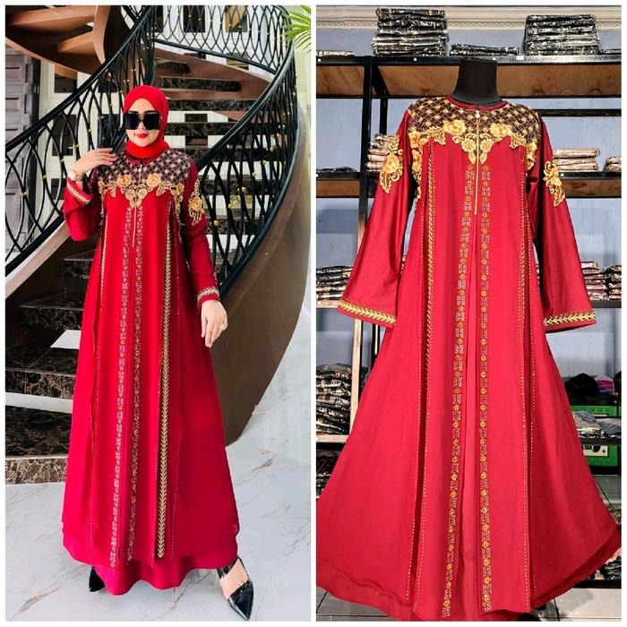 Gamis Abaya Terbaru Turkey Merah Ceruty Lembut Muslim Dress - A10 - M, Mayra Maroon