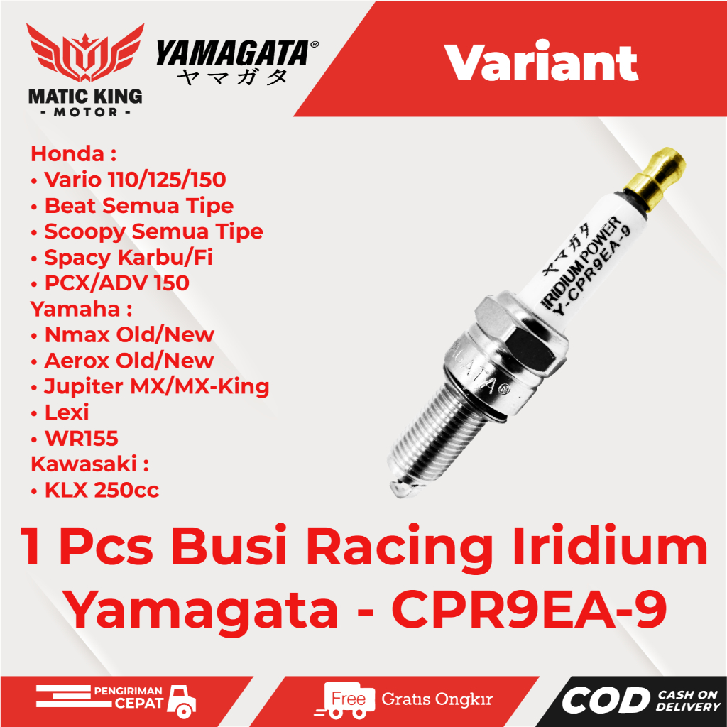 Yamagata Busi Spark Rng Honda Beat Vario Scoopy PCX Genio Deluxe Verza CB CBR ADV Karbu Fi ESP 110/125/150 CPR9EA