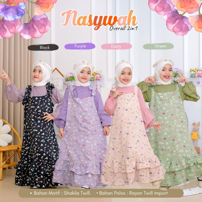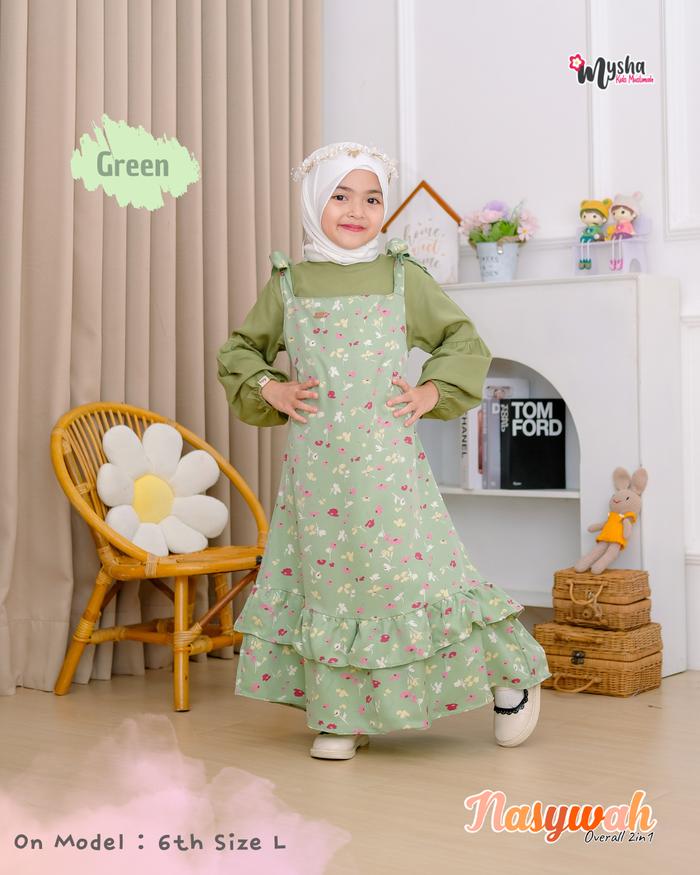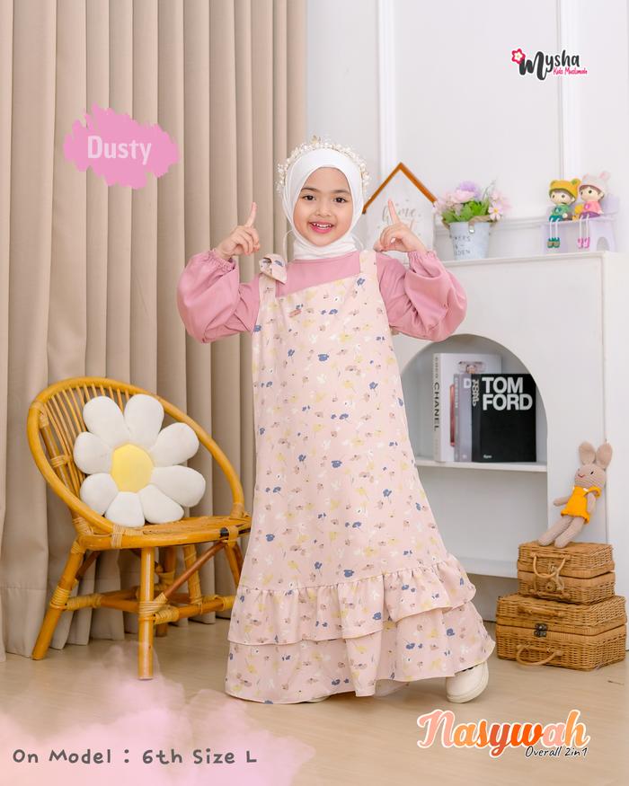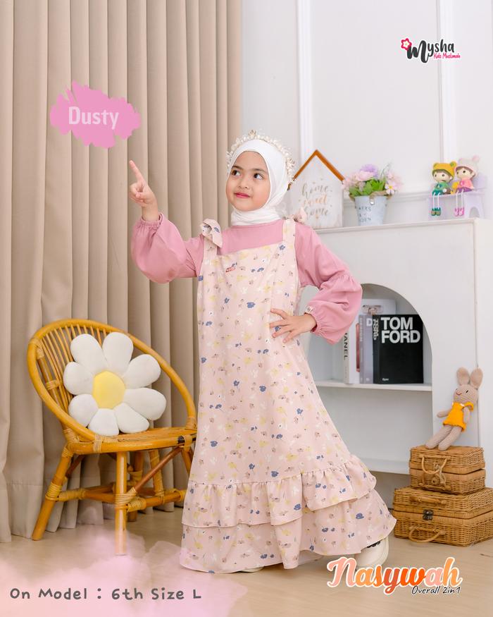 Mysha Kids Muslimah - Nasywah 2In1 Overall Dress Overal Anak Perempuan Cewek 1-12 Thn Gamis Anak Perempuan Baju Motif Bu