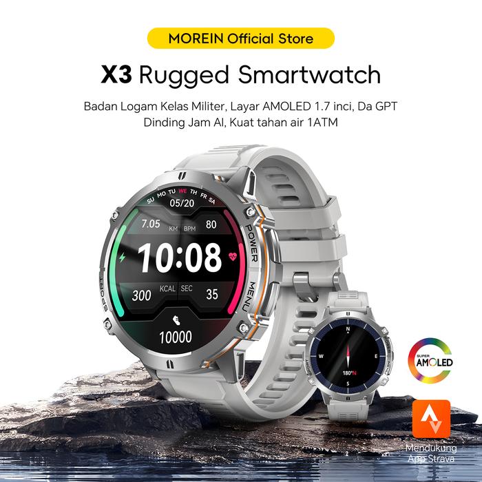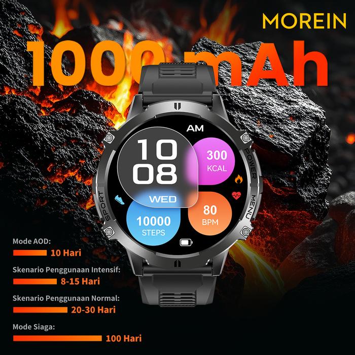 【Jam Tangan Layar Besar Dengan Daya Tahan 100 Hari & Baterai 1000Mah】Moreinwear Smartwatch Rock X3, Layar Amoled Ultra-J