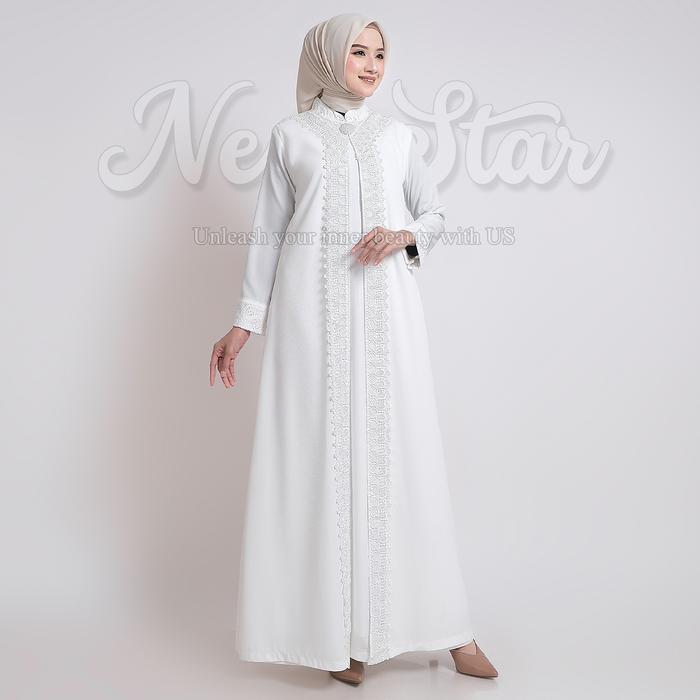 Newstar - Gamis Putih Lebaran 2026 Terbaru Baju Muslim Wanita Dress Madinah Mewah Simple Elegan Abaya Turki Manasik Haji