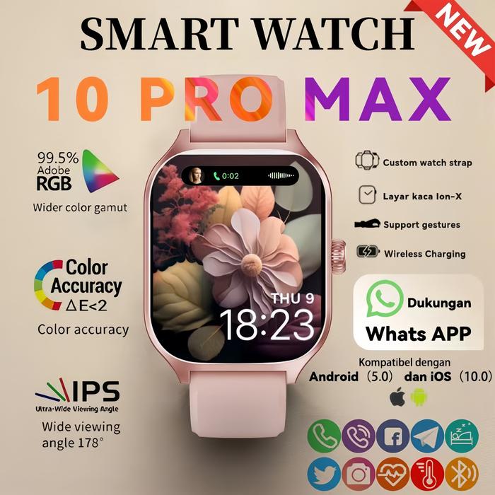 Official Smartwatch 10 Pro Max 100 PERSENBaruoriginal Mendukung Operasi Gerakanwith 2.1" Hd Amoled Display Waterproof Blueto