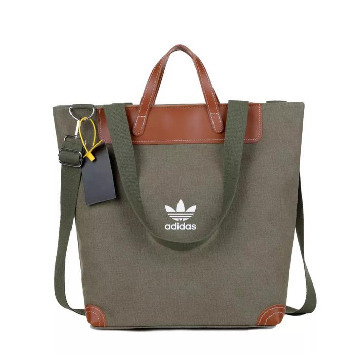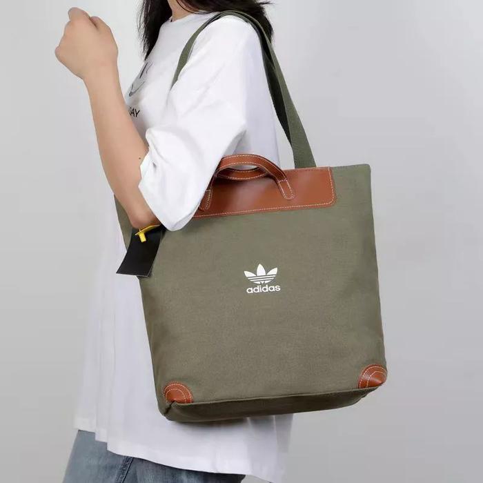 Tas Tote Shoulder Bag Kanvas Kulit Premium Wanita Import Kuliah Kerja - Green