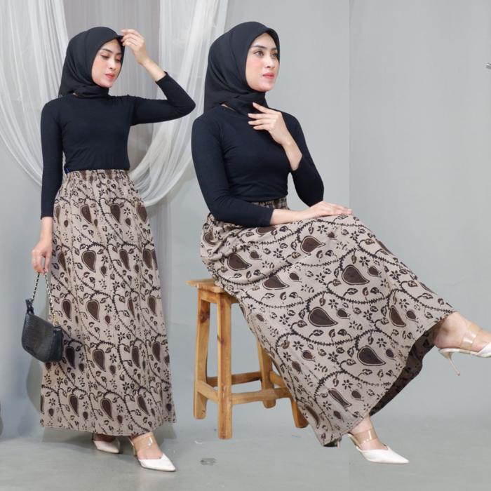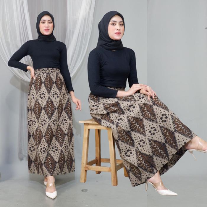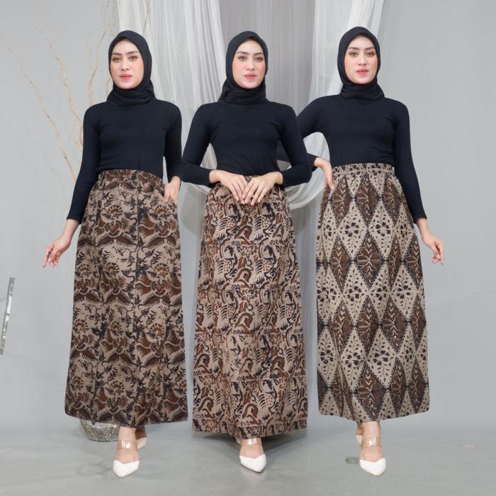 Rok Span Cokelat Manis Motif Cap Batik Handmade Bahan Katun Premium Rok Batik Cantik - Daun Lompong, Allsize Lp 105-110