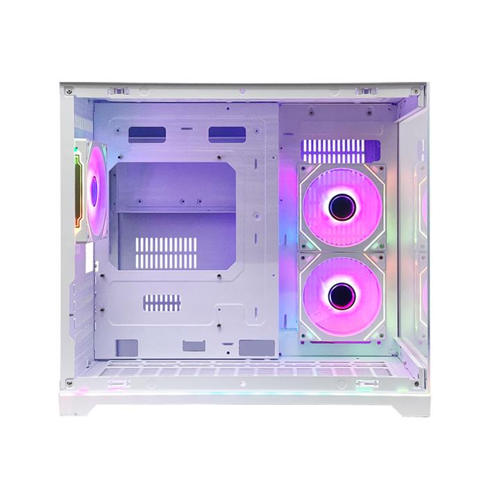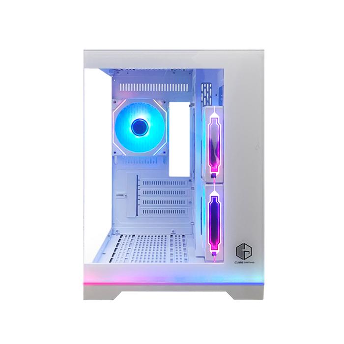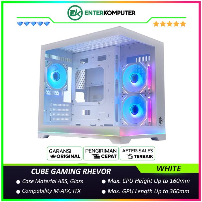 Cube Gaming Rhevor White - Matx Gaming Case - Panoramic View - Aesthetic Mini Dual Chamber / Casing Pc Gaming