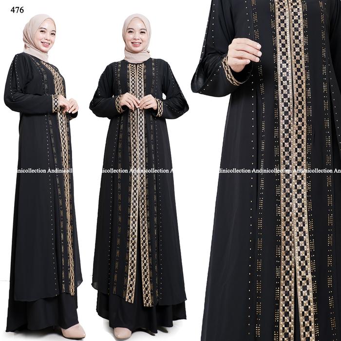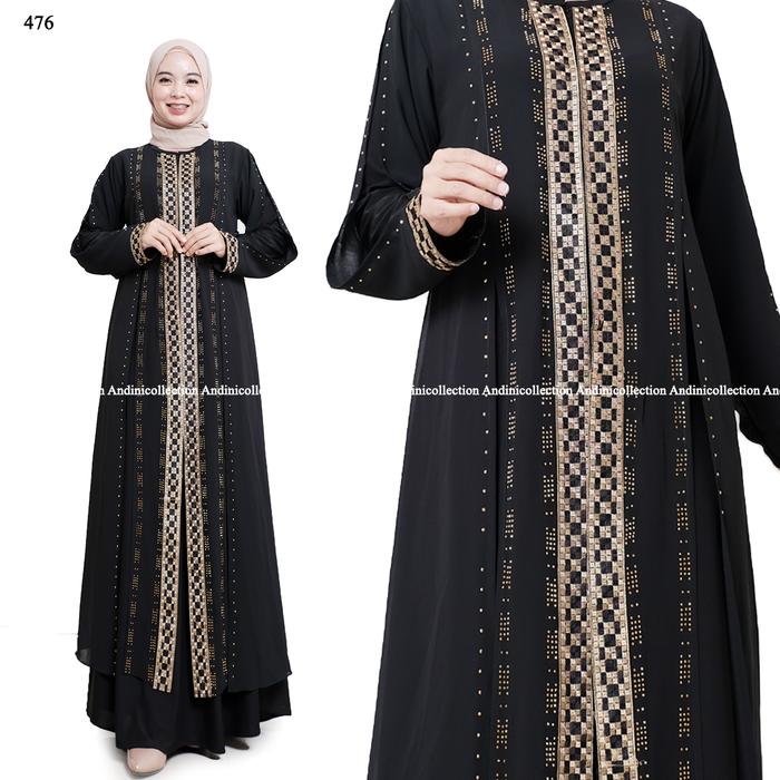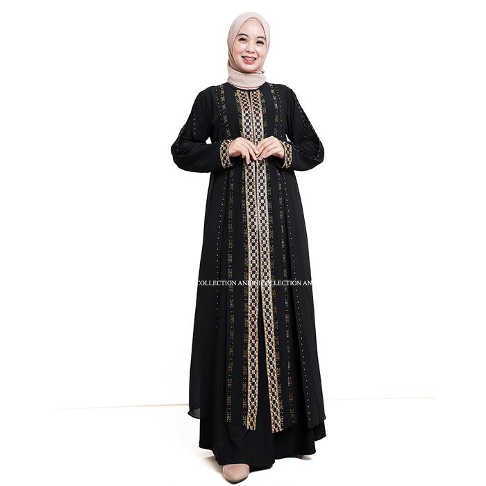 Andinicollection Abaya Turkey 476 Amarta Hitam Muslim Bordir Dan Payet Mewah Gamis Wanita Lebaran Dress - Hitam, M