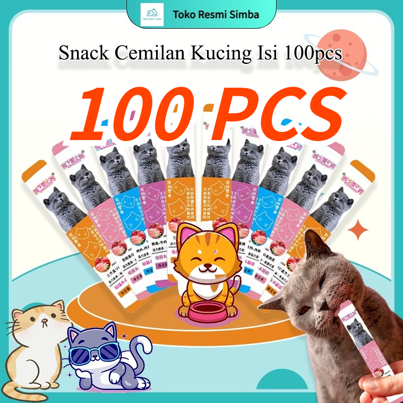 100 pcs Mixi snack kucing murah Paket snack hewan peliharaan cat strip 16g/strip kucing kecil dan cemilan kucing