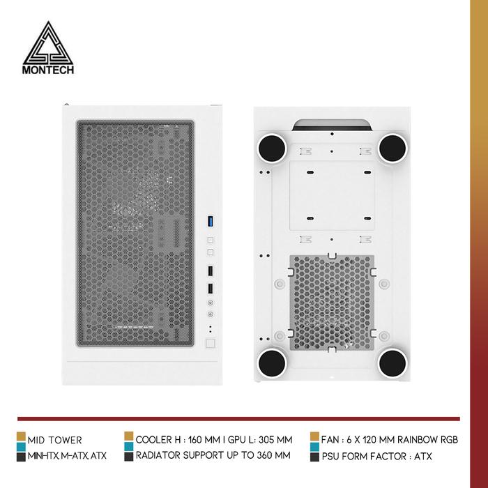 Montech X3 Mesh | Side Swivel Tempered Glass Pc Case - Hitam