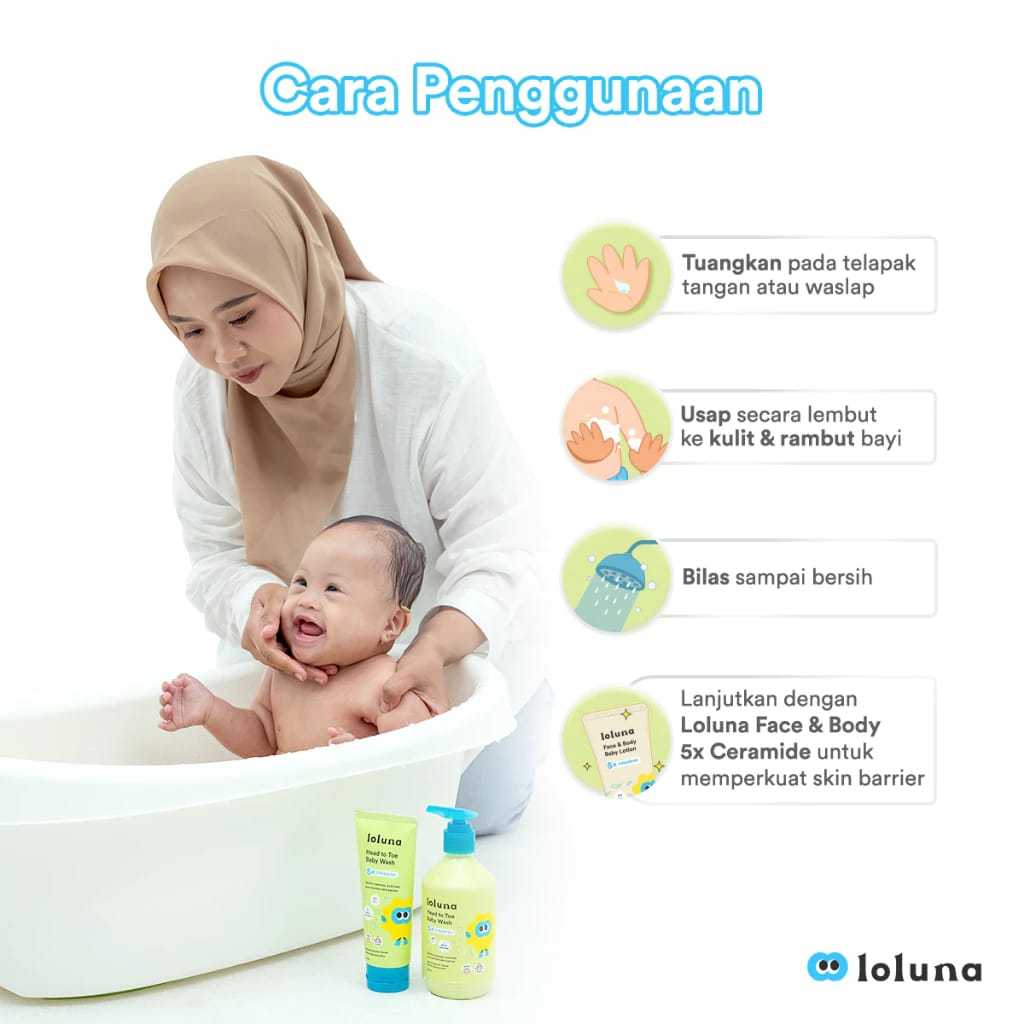Loluna | Face & Body Lotion 80ml | Head to Toe Baby Wash 100ml/300ml | Loluna Hair Lotion 100ml - Sabun Mandi bayi