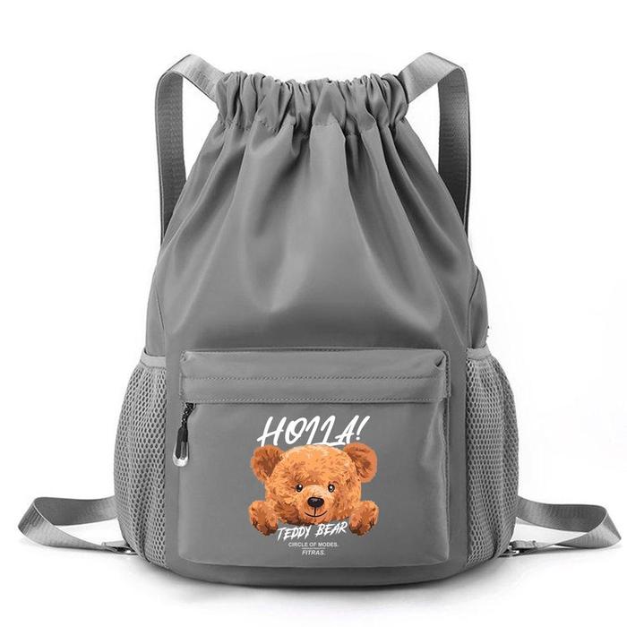 Stringbag Anti Air Motif Holla Tas Serut Sekolah Aesthetic Pria Wanita Tas Ransel Serut Multifungsi - Hitam