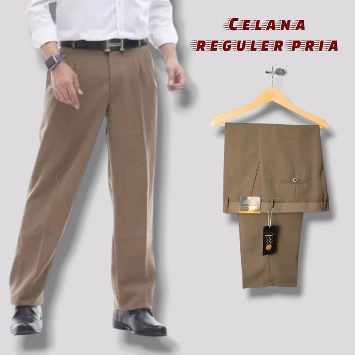 Celana Formal Panjang Pria Standar Reguler Bahan Twist Teflon Tebal Casual Premium Hitam Coklat Abu Navy Cream Basic