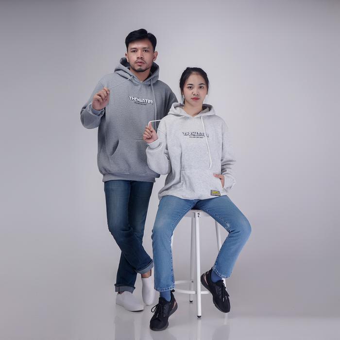 Hoodie Sweater Premium Bordir Distro Unisex Keren Flacee Tebal Pria Fleece Jumper Wanita - Abu Muda, M