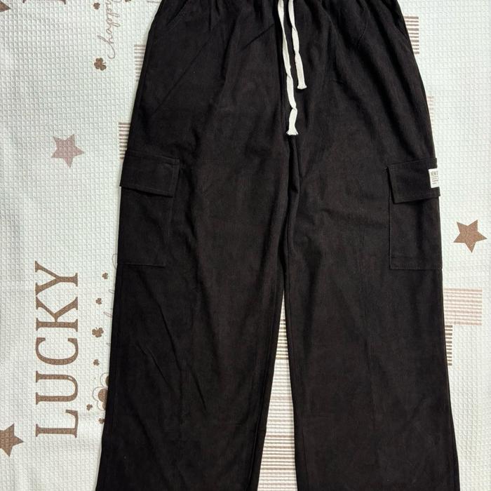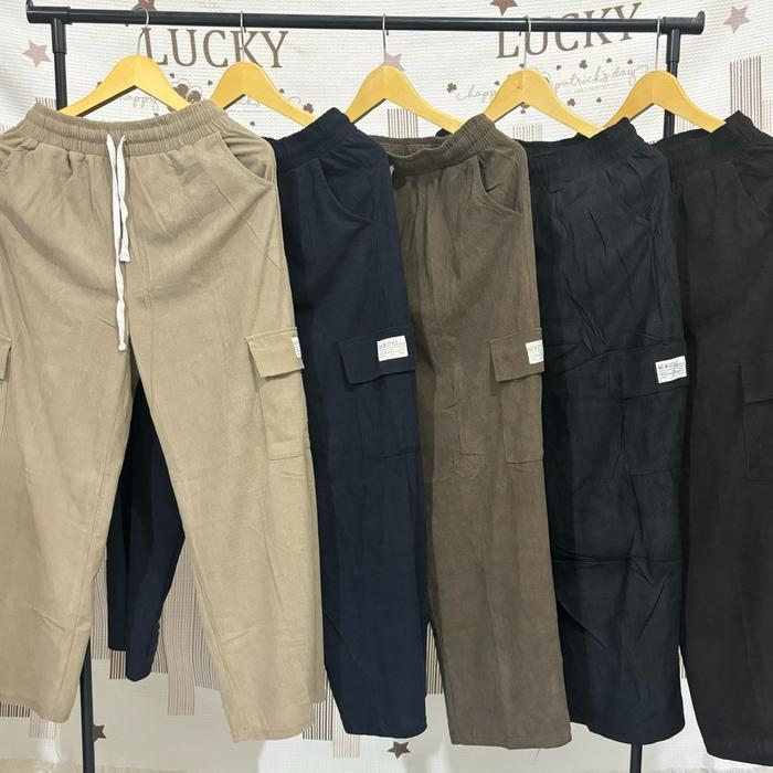 Mikofashion - Celana Cargo Pants Wanita - Celana Bahan Corduroy - Celana Santai Cargo Pants Panjang - Black