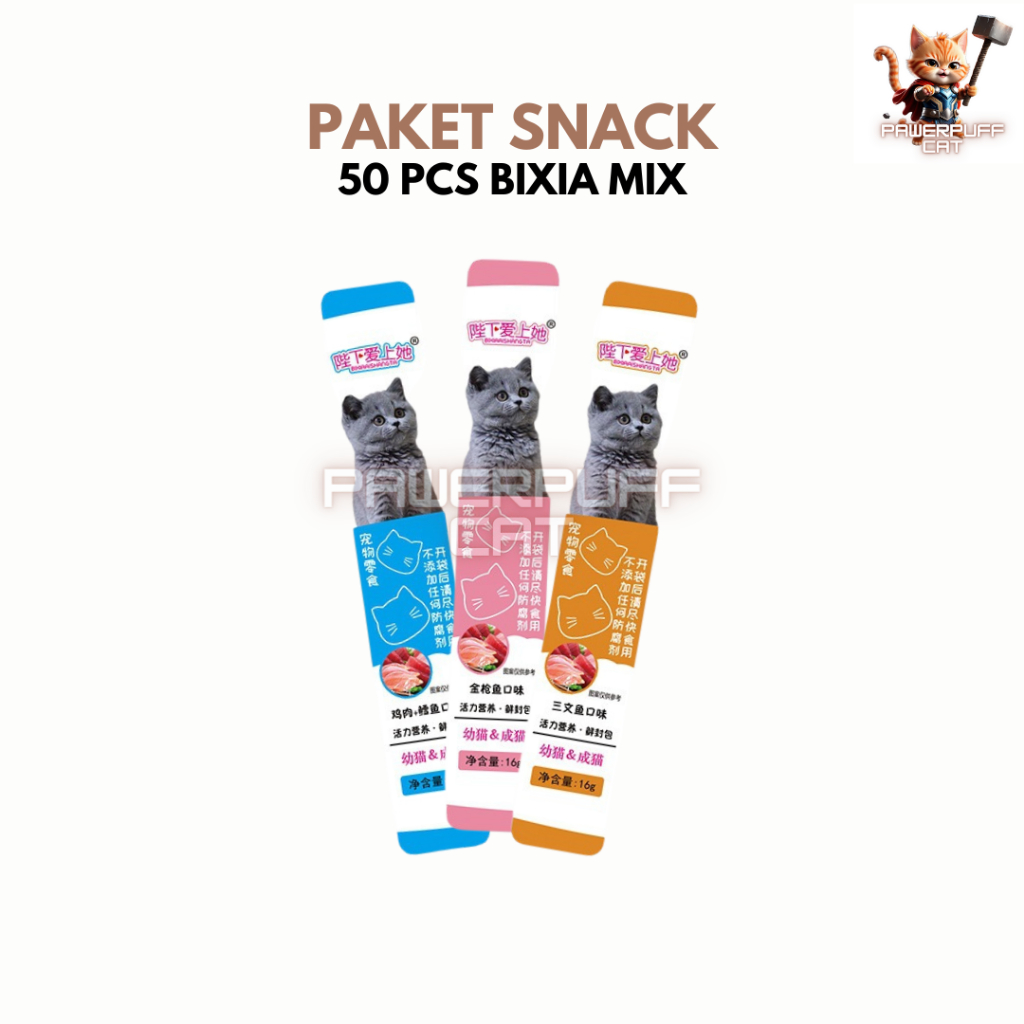 SC Paket Snack 50 pcs Liebao Bixia Camilan Kucing Treats Ikan Tuna Salmon Ayam Penambah Nafsu Makan