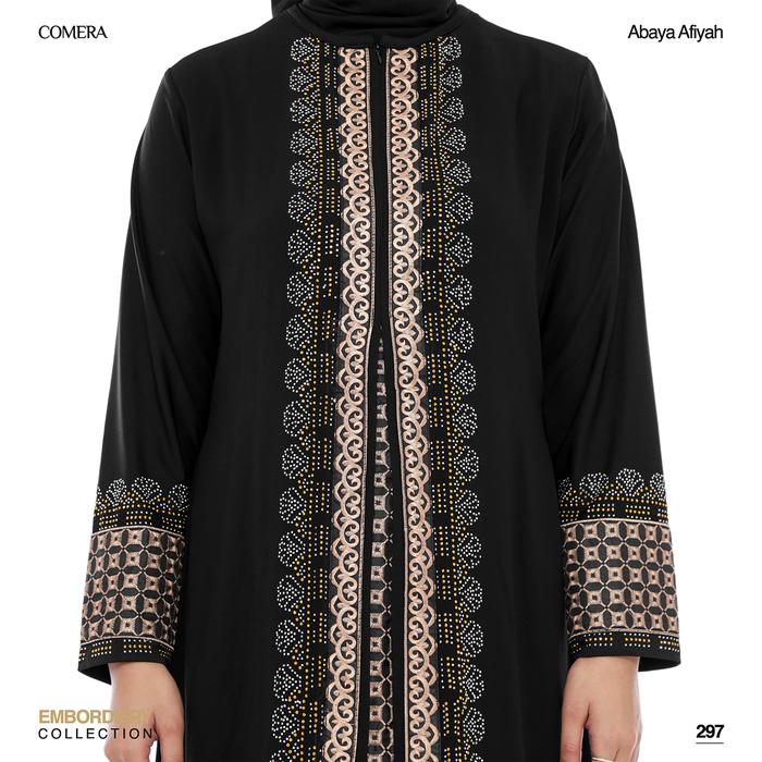 Comera - Abaya Afiyah Gamis Turkey Hitam Jersey Ceruti Bordir Payet Mewah Dress Lebaran Pesta 297 - Hitam, M