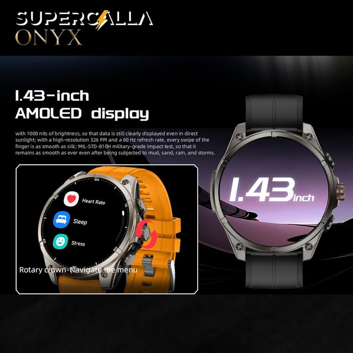 Supercalla Onyx Outdoor Gps 1.43" Amoled Smart Watch With Flashlight Compass 670 Mah Relojes Men Sports Health Monitor S