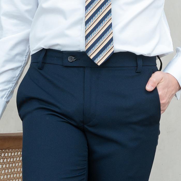 Celana Panjang Pria Slim Fit Kerja Formal Button Bahan Stretch Navy - Button, 30