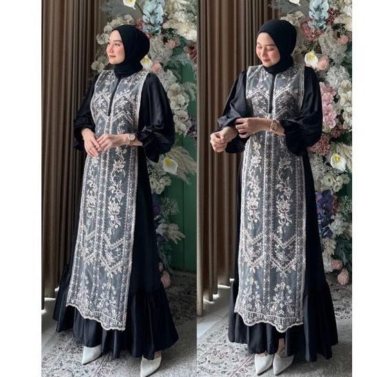Snowy Dress Silk Mix Tille Brukat Gaun Wanita Kondangan Brukat Busui Friendly | Sonya Dress Tille Maxi Dress | Gamis Mus