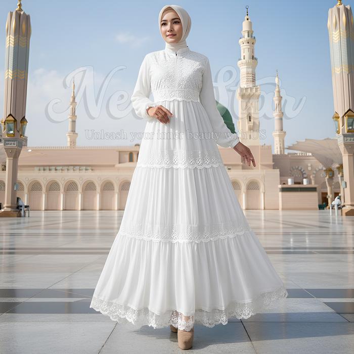 Newstar - Gamis Putih Lebaran 2026 Terbaru Baju Muslim Wanita Dress Madinah Mewah Simple Elegan Abaya Turki Manasik Haji