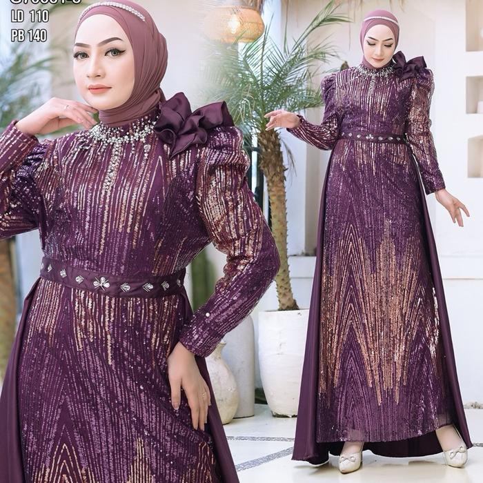 Kemilau Official - Gaun Maira Vol 2 All Size Ld 108Cm - Dress Busana Muslim Kondangan Pesta Brukat - Maroon