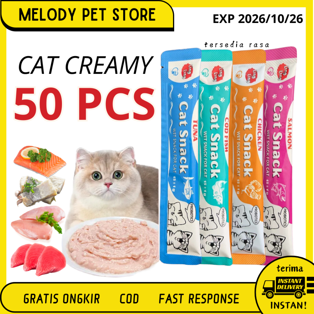[/] MELODYPS LING LING DOPETS 1KG Cat Snack Tersedia 4 rasa Salmon/Tuna/Chicken/fish snack cat strip 16g/bat